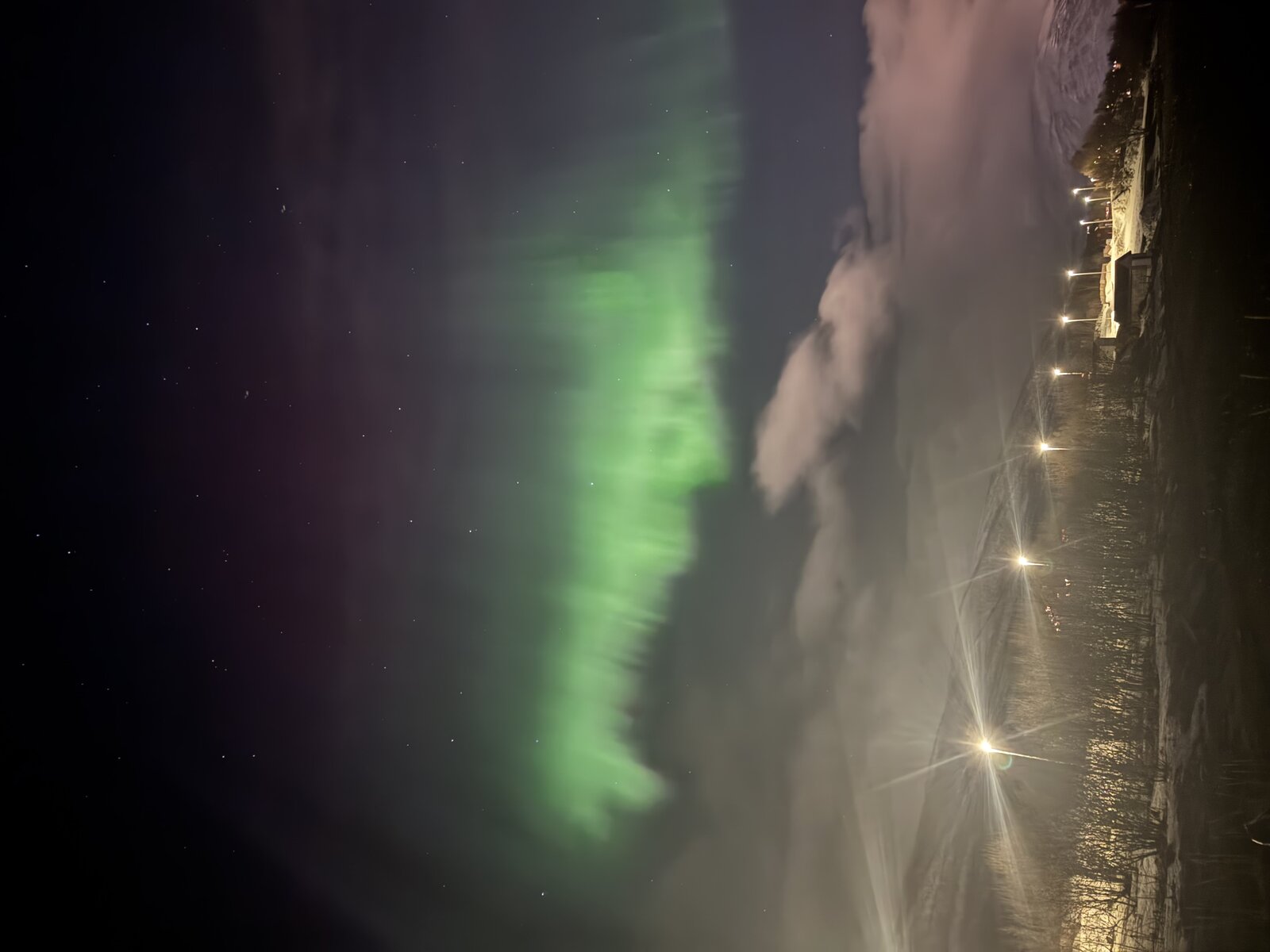 | Aurora visibility | Auroras seen through breaks in the clouds |