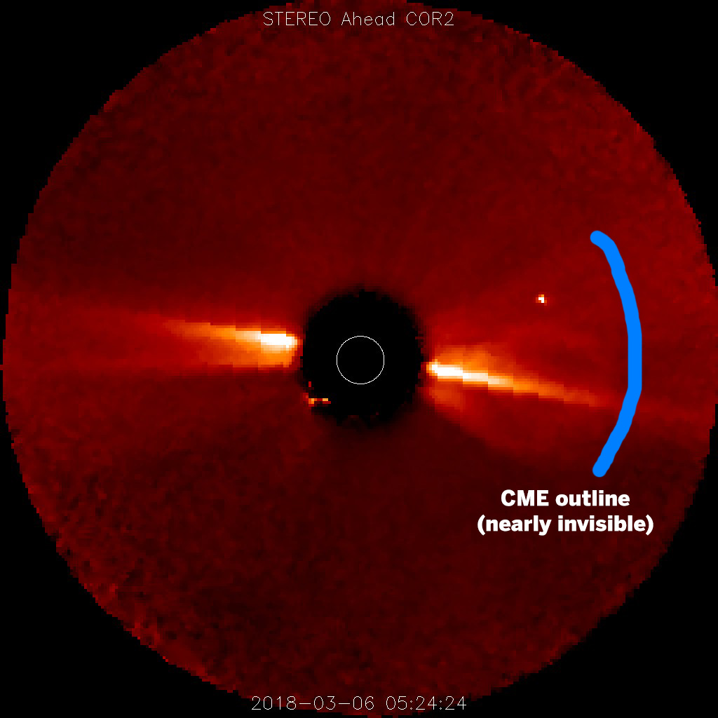 Image: the nearly impossible to see CME as seen by STEREO Ahead COR2.