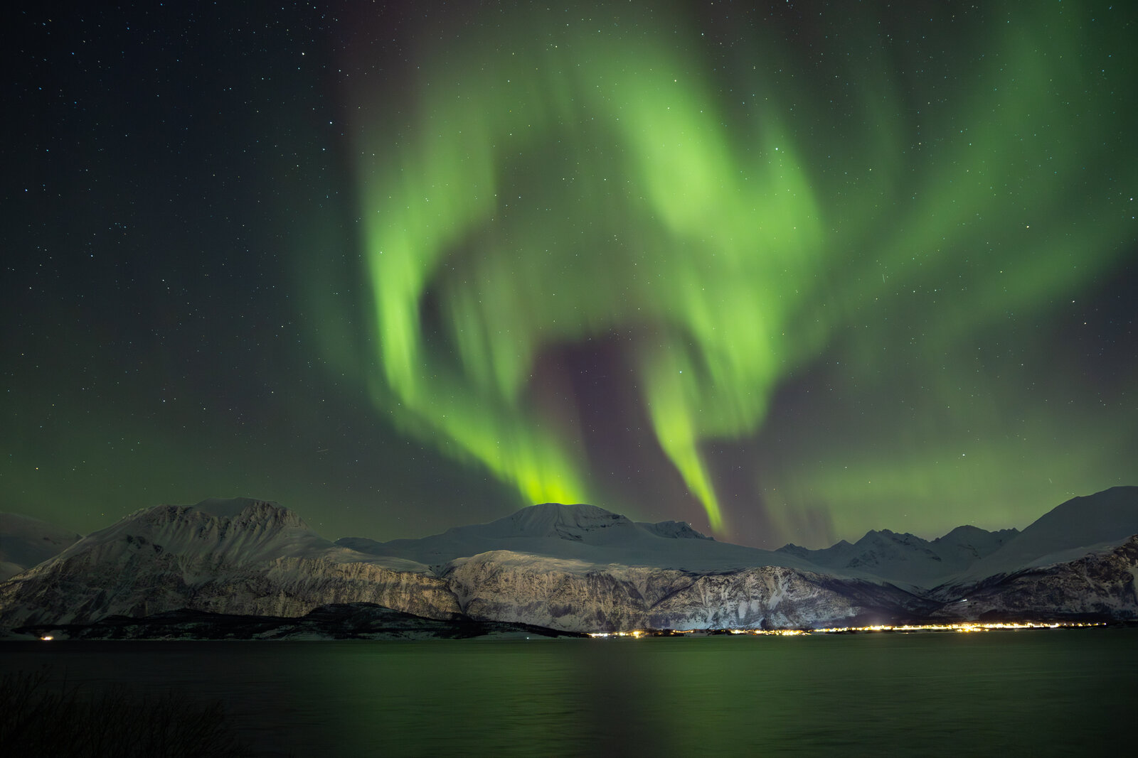 The weather couldn't be better with all clear skies, all we needed was some good data for a successful night of aurorae. Another night in the freezing cold around -20°C, warmed up a bit in the car during the night as it would become a very special night. Our dinner wasn't yet completed when we already could see it from our hotel window, so quickly got ready and drove a bit more northward for a darker spot outside the town and found a pretty nice spot at a parking lot along the highway. A few big bands of aurora were already visible at the start but it was pretty static at first, but as the night evolved we got treated with two very sweet substorms which made the aurora dance in the sky and became so bright that I could even video it with my phone. In this amazing setting at the fjords, it was really breathtaking and one of my best northern lights displays ever!