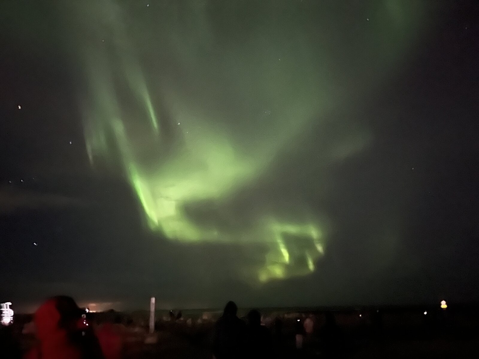 We spontaneously drove to the viewpoint in Reykjavik and waited in the car. When the first people took out their cell phones, we looked in that direction and there they were.