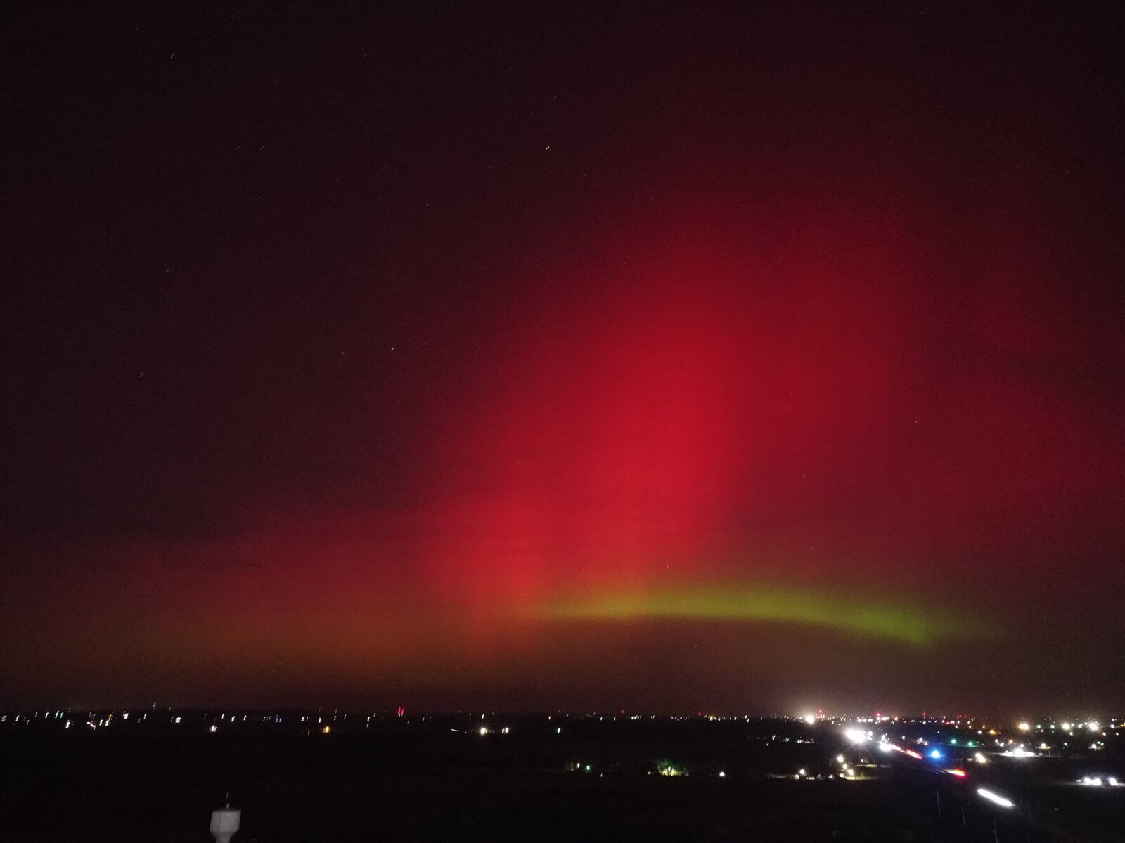 Huge geostorm had hit with a KP of 8 peaked at or around 9:10pm CST. Flew my drone up, I know I shouldn't have, but was able to catch it in its glory. From my porch, I could see with my eyes the entire northern sky turn bright red, and see rays for about 5 minutes. It looked like it was waving back and forth.