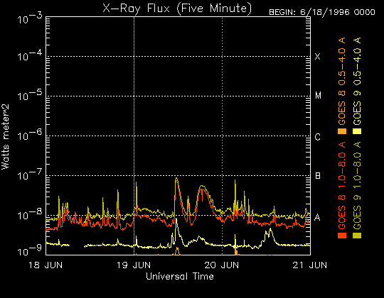 De operationele data in de bovenstaande grafiek werd aangepast om de schaalfactor te verwijderen die werd toegepast door het Space Weather Prediction Center (SWPC). Vanwege de SWPC-schaalfactor in de operationele data werden de zonnevlammen 42% kleiner gerapporteerd dan deze in de wetenschappelijke data. De schaalfactor werd ook verwijderd uit de lijst met zonnevlammen om de werkelijke fysieke eenheden weer te geven.