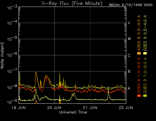 De operationele data in de bovenstaande grafiek werd aangepast om de schaalfactor te verwijderen die werd toegepast door het Space Weather Prediction Center (SWPC). Vanwege de SWPC-schaalfactor in de operationele data werden de zonnevlammen 42% kleiner gerapporteerd dan deze in de wetenschappelijke data. De schaalfactor werd ook verwijderd uit de lijst met zonnevlammen om de werkelijke fysieke eenheden weer te geven.
