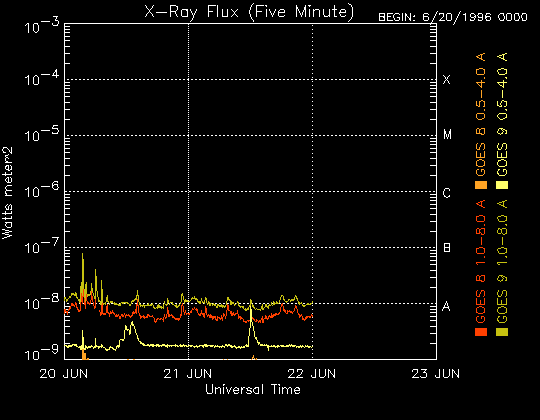 De operationele data in de bovenstaande grafiek werd aangepast om de schaalfactor te verwijderen die werd toegepast door het Space Weather Prediction Center (SWPC). Vanwege de SWPC-schaalfactor in de operationele data werden de zonnevlammen 42% kleiner gerapporteerd dan deze in de wetenschappelijke data. De schaalfactor werd ook verwijderd uit de lijst met zonnevlammen om de werkelijke fysieke eenheden weer te geven.