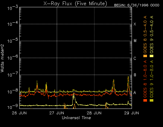 De operationele data in de bovenstaande grafiek werd aangepast om de schaalfactor te verwijderen die werd toegepast door het Space Weather Prediction Center (SWPC). Vanwege de SWPC-schaalfactor in de operationele data werden de zonnevlammen 42% kleiner gerapporteerd dan deze in de wetenschappelijke data. De schaalfactor werd ook verwijderd uit de lijst met zonnevlammen om de werkelijke fysieke eenheden weer te geven.