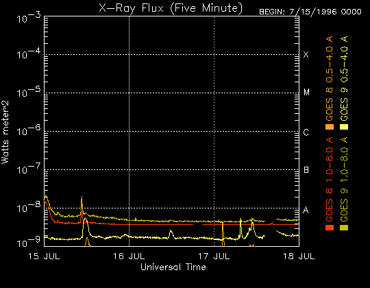 De operationele data in de bovenstaande grafiek werd aangepast om de schaalfactor te verwijderen die werd toegepast door het Space Weather Prediction Center (SWPC). Vanwege de SWPC-schaalfactor in de operationele data werden de zonnevlammen 42% kleiner gerapporteerd dan deze in de wetenschappelijke data. De schaalfactor werd ook verwijderd uit de lijst met zonnevlammen om de werkelijke fysieke eenheden weer te geven.
