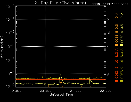 De operationele data in de bovenstaande grafiek werd aangepast om de schaalfactor te verwijderen die werd toegepast door het Space Weather Prediction Center (SWPC). Vanwege de SWPC-schaalfactor in de operationele data werden de zonnevlammen 42% kleiner gerapporteerd dan deze in de wetenschappelijke data. De schaalfactor werd ook verwijderd uit de lijst met zonnevlammen om de werkelijke fysieke eenheden weer te geven.