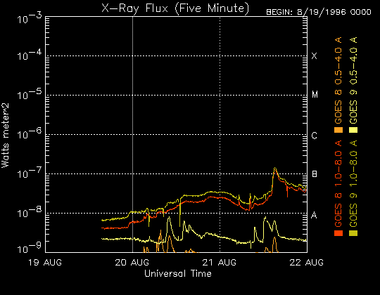 De operationele data in de bovenstaande grafiek werd aangepast om de schaalfactor te verwijderen die werd toegepast door het Space Weather Prediction Center (SWPC). Vanwege de SWPC-schaalfactor in de operationele data werden de zonnevlammen 42% kleiner gerapporteerd dan deze in de wetenschappelijke data. De schaalfactor werd ook verwijderd uit de lijst met zonnevlammen om de werkelijke fysieke eenheden weer te geven.