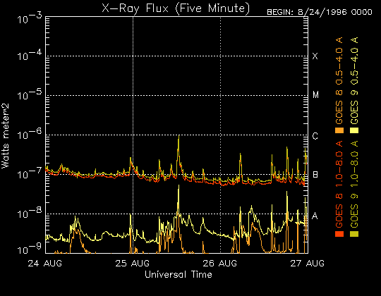 De operationele data in de bovenstaande grafiek werd aangepast om de schaalfactor te verwijderen die werd toegepast door het Space Weather Prediction Center (SWPC). Vanwege de SWPC-schaalfactor in de operationele data werden de zonnevlammen 42% kleiner gerapporteerd dan deze in de wetenschappelijke data. De schaalfactor werd ook verwijderd uit de lijst met zonnevlammen om de werkelijke fysieke eenheden weer te geven.