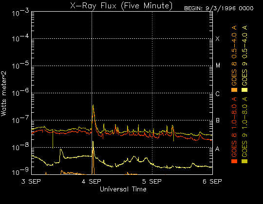 De operationele data in de bovenstaande grafiek werd aangepast om de schaalfactor te verwijderen die werd toegepast door het Space Weather Prediction Center (SWPC). Vanwege de SWPC-schaalfactor in de operationele data werden de zonnevlammen 42% kleiner gerapporteerd dan deze in de wetenschappelijke data. De schaalfactor werd ook verwijderd uit de lijst met zonnevlammen om de werkelijke fysieke eenheden weer te geven.