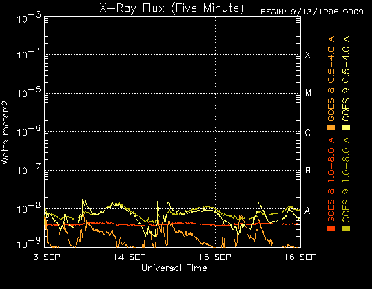De operationele data in de bovenstaande grafiek werd aangepast om de schaalfactor te verwijderen die werd toegepast door het Space Weather Prediction Center (SWPC). Vanwege de SWPC-schaalfactor in de operationele data werden de zonnevlammen 42% kleiner gerapporteerd dan deze in de wetenschappelijke data. De schaalfactor werd ook verwijderd uit de lijst met zonnevlammen om de werkelijke fysieke eenheden weer te geven.