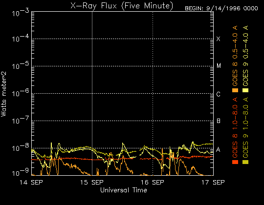De operationele data in de bovenstaande grafiek werd aangepast om de schaalfactor te verwijderen die werd toegepast door het Space Weather Prediction Center (SWPC). Vanwege de SWPC-schaalfactor in de operationele data werden de zonnevlammen 42% kleiner gerapporteerd dan deze in de wetenschappelijke data. De schaalfactor werd ook verwijderd uit de lijst met zonnevlammen om de werkelijke fysieke eenheden weer te geven.
