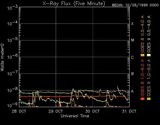 De operationele data in de bovenstaande grafiek werd aangepast om de schaalfactor te verwijderen die werd toegepast door het Space Weather Prediction Center (SWPC). Vanwege de SWPC-schaalfactor in de operationele data werden de zonnevlammen 42% kleiner gerapporteerd dan deze in de wetenschappelijke data. De schaalfactor werd ook verwijderd uit de lijst met zonnevlammen om de werkelijke fysieke eenheden weer te geven.
