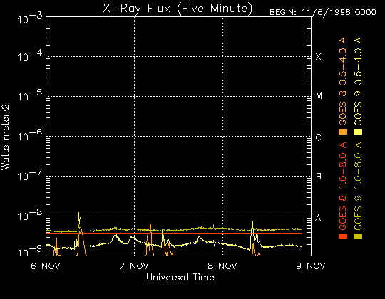 De operationele data in de bovenstaande grafiek werd aangepast om de schaalfactor te verwijderen die werd toegepast door het Space Weather Prediction Center (SWPC). Vanwege de SWPC-schaalfactor in de operationele data werden de zonnevlammen 42% kleiner gerapporteerd dan deze in de wetenschappelijke data. De schaalfactor werd ook verwijderd uit de lijst met zonnevlammen om de werkelijke fysieke eenheden weer te geven.