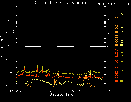 De operationele data in de bovenstaande grafiek werd aangepast om de schaalfactor te verwijderen die werd toegepast door het Space Weather Prediction Center (SWPC). Vanwege de SWPC-schaalfactor in de operationele data werden de zonnevlammen 42% kleiner gerapporteerd dan deze in de wetenschappelijke data. De schaalfactor werd ook verwijderd uit de lijst met zonnevlammen om de werkelijke fysieke eenheden weer te geven.