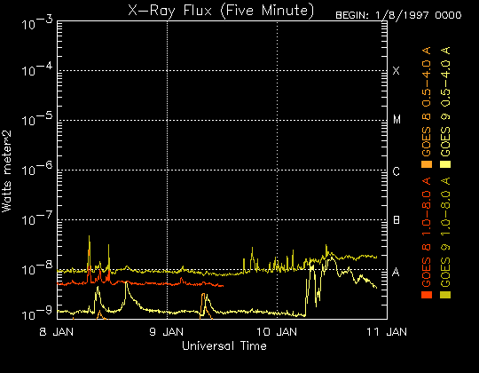 De operationele data in de bovenstaande grafiek werd aangepast om de schaalfactor te verwijderen die werd toegepast door het Space Weather Prediction Center (SWPC). Vanwege de SWPC-schaalfactor in de operationele data werden de zonnevlammen 42% kleiner gerapporteerd dan deze in de wetenschappelijke data. De schaalfactor werd ook verwijderd uit de lijst met zonnevlammen om de werkelijke fysieke eenheden weer te geven.