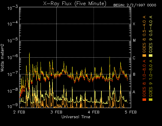 De operationele data in de bovenstaande grafiek werd aangepast om de schaalfactor te verwijderen die werd toegepast door het Space Weather Prediction Center (SWPC). Vanwege de SWPC-schaalfactor in de operationele data werden de zonnevlammen 42% kleiner gerapporteerd dan deze in de wetenschappelijke data. De schaalfactor werd ook verwijderd uit de lijst met zonnevlammen om de werkelijke fysieke eenheden weer te geven.