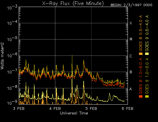 De operationele data in de bovenstaande grafiek werd aangepast om de schaalfactor te verwijderen die werd toegepast door het Space Weather Prediction Center (SWPC). Vanwege de SWPC-schaalfactor in de operationele data werden de zonnevlammen 42% kleiner gerapporteerd dan deze in de wetenschappelijke data. De schaalfactor werd ook verwijderd uit de lijst met zonnevlammen om de werkelijke fysieke eenheden weer te geven.
