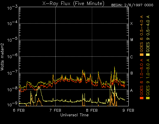 De operationele data in de bovenstaande grafiek werd aangepast om de schaalfactor te verwijderen die werd toegepast door het Space Weather Prediction Center (SWPC). Vanwege de SWPC-schaalfactor in de operationele data werden de zonnevlammen 42% kleiner gerapporteerd dan deze in de wetenschappelijke data. De schaalfactor werd ook verwijderd uit de lijst met zonnevlammen om de werkelijke fysieke eenheden weer te geven.