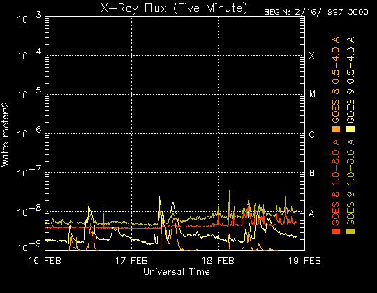 De operationele data in de bovenstaande grafiek werd aangepast om de schaalfactor te verwijderen die werd toegepast door het Space Weather Prediction Center (SWPC). Vanwege de SWPC-schaalfactor in de operationele data werden de zonnevlammen 42% kleiner gerapporteerd dan deze in de wetenschappelijke data. De schaalfactor werd ook verwijderd uit de lijst met zonnevlammen om de werkelijke fysieke eenheden weer te geven.