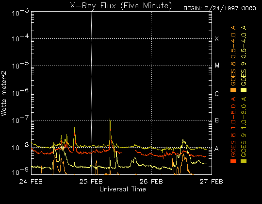 De operationele data in de bovenstaande grafiek werd aangepast om de schaalfactor te verwijderen die werd toegepast door het Space Weather Prediction Center (SWPC). Vanwege de SWPC-schaalfactor in de operationele data werden de zonnevlammen 42% kleiner gerapporteerd dan deze in de wetenschappelijke data. De schaalfactor werd ook verwijderd uit de lijst met zonnevlammen om de werkelijke fysieke eenheden weer te geven.