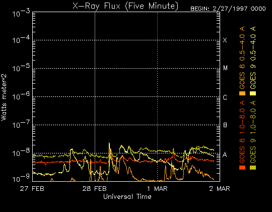 De operationele data in de bovenstaande grafiek werd aangepast om de schaalfactor te verwijderen die werd toegepast door het Space Weather Prediction Center (SWPC). Vanwege de SWPC-schaalfactor in de operationele data werden de zonnevlammen 42% kleiner gerapporteerd dan deze in de wetenschappelijke data. De schaalfactor werd ook verwijderd uit de lijst met zonnevlammen om de werkelijke fysieke eenheden weer te geven.