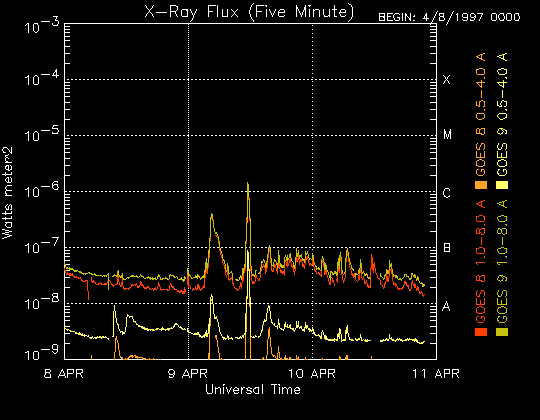 De operationele data in de bovenstaande grafiek werd aangepast om de schaalfactor te verwijderen die werd toegepast door het Space Weather Prediction Center (SWPC). Vanwege de SWPC-schaalfactor in de operationele data werden de zonnevlammen 42% kleiner gerapporteerd dan deze in de wetenschappelijke data. De schaalfactor werd ook verwijderd uit de lijst met zonnevlammen om de werkelijke fysieke eenheden weer te geven.