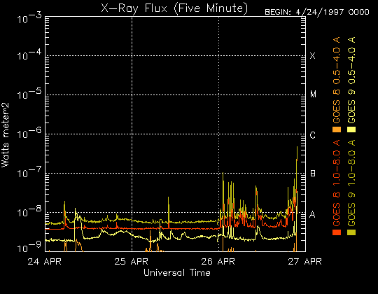 De operationele data in de bovenstaande grafiek werd aangepast om de schaalfactor te verwijderen die werd toegepast door het Space Weather Prediction Center (SWPC). Vanwege de SWPC-schaalfactor in de operationele data werden de zonnevlammen 42% kleiner gerapporteerd dan deze in de wetenschappelijke data. De schaalfactor werd ook verwijderd uit de lijst met zonnevlammen om de werkelijke fysieke eenheden weer te geven.