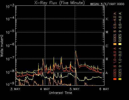 De operationele data in de bovenstaande grafiek werd aangepast om de schaalfactor te verwijderen die werd toegepast door het Space Weather Prediction Center (SWPC). Vanwege de SWPC-schaalfactor in de operationele data werden de zonnevlammen 42% kleiner gerapporteerd dan deze in de wetenschappelijke data. De schaalfactor werd ook verwijderd uit de lijst met zonnevlammen om de werkelijke fysieke eenheden weer te geven.