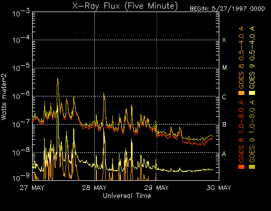 De operationele data in de bovenstaande grafiek werd aangepast om de schaalfactor te verwijderen die werd toegepast door het Space Weather Prediction Center (SWPC). Vanwege de SWPC-schaalfactor in de operationele data werden de zonnevlammen 42% kleiner gerapporteerd dan deze in de wetenschappelijke data. De schaalfactor werd ook verwijderd uit de lijst met zonnevlammen om de werkelijke fysieke eenheden weer te geven.
