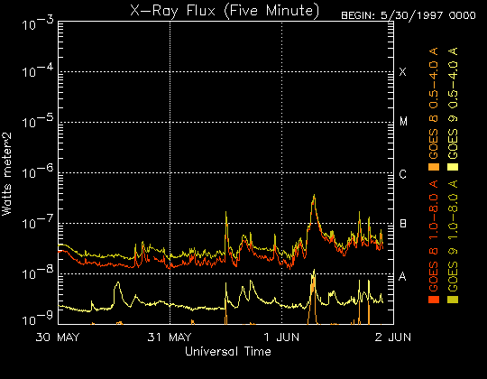De operationele data in de bovenstaande grafiek werd aangepast om de schaalfactor te verwijderen die werd toegepast door het Space Weather Prediction Center (SWPC). Vanwege de SWPC-schaalfactor in de operationele data werden de zonnevlammen 42% kleiner gerapporteerd dan deze in de wetenschappelijke data. De schaalfactor werd ook verwijderd uit de lijst met zonnevlammen om de werkelijke fysieke eenheden weer te geven.