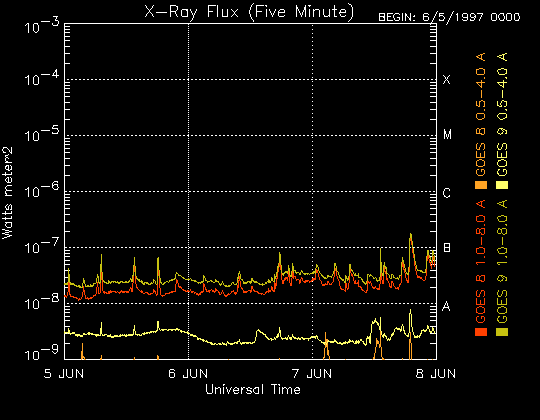 De operationele data in de bovenstaande grafiek werd aangepast om de schaalfactor te verwijderen die werd toegepast door het Space Weather Prediction Center (SWPC). Vanwege de SWPC-schaalfactor in de operationele data werden de zonnevlammen 42% kleiner gerapporteerd dan deze in de wetenschappelijke data. De schaalfactor werd ook verwijderd uit de lijst met zonnevlammen om de werkelijke fysieke eenheden weer te geven.