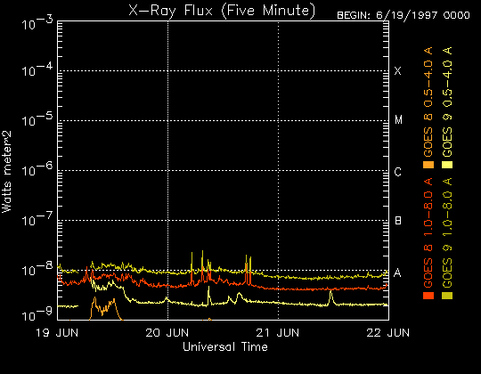 De operationele data in de bovenstaande grafiek werd aangepast om de schaalfactor te verwijderen die werd toegepast door het Space Weather Prediction Center (SWPC). Vanwege de SWPC-schaalfactor in de operationele data werden de zonnevlammen 42% kleiner gerapporteerd dan deze in de wetenschappelijke data. De schaalfactor werd ook verwijderd uit de lijst met zonnevlammen om de werkelijke fysieke eenheden weer te geven.
