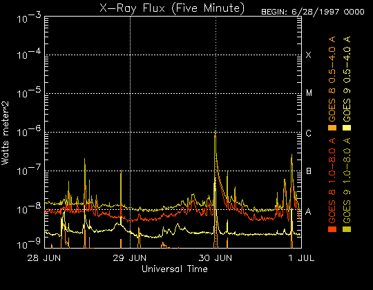 De operationele data in de bovenstaande grafiek werd aangepast om de schaalfactor te verwijderen die werd toegepast door het Space Weather Prediction Center (SWPC). Vanwege de SWPC-schaalfactor in de operationele data werden de zonnevlammen 42% kleiner gerapporteerd dan deze in de wetenschappelijke data. De schaalfactor werd ook verwijderd uit de lijst met zonnevlammen om de werkelijke fysieke eenheden weer te geven.