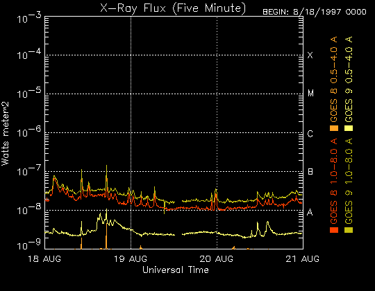 De operationele data in de bovenstaande grafiek werd aangepast om de schaalfactor te verwijderen die werd toegepast door het Space Weather Prediction Center (SWPC). Vanwege de SWPC-schaalfactor in de operationele data werden de zonnevlammen 42% kleiner gerapporteerd dan deze in de wetenschappelijke data. De schaalfactor werd ook verwijderd uit de lijst met zonnevlammen om de werkelijke fysieke eenheden weer te geven.