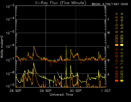 De operationele data in de bovenstaande grafiek werd aangepast om de schaalfactor te verwijderen die werd toegepast door het Space Weather Prediction Center (SWPC). Vanwege de SWPC-schaalfactor in de operationele data werden de zonnevlammen 42% kleiner gerapporteerd dan deze in de wetenschappelijke data. De schaalfactor werd ook verwijderd uit de lijst met zonnevlammen om de werkelijke fysieke eenheden weer te geven.