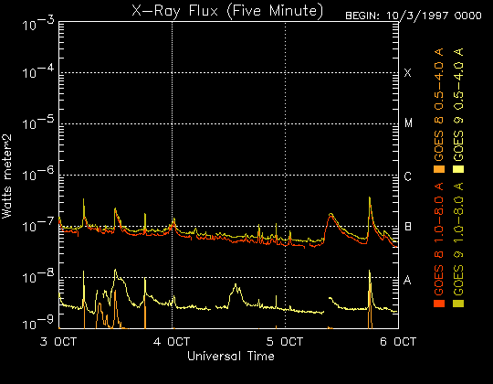 De operationele data in de bovenstaande grafiek werd aangepast om de schaalfactor te verwijderen die werd toegepast door het Space Weather Prediction Center (SWPC). Vanwege de SWPC-schaalfactor in de operationele data werden de zonnevlammen 42% kleiner gerapporteerd dan deze in de wetenschappelijke data. De schaalfactor werd ook verwijderd uit de lijst met zonnevlammen om de werkelijke fysieke eenheden weer te geven.