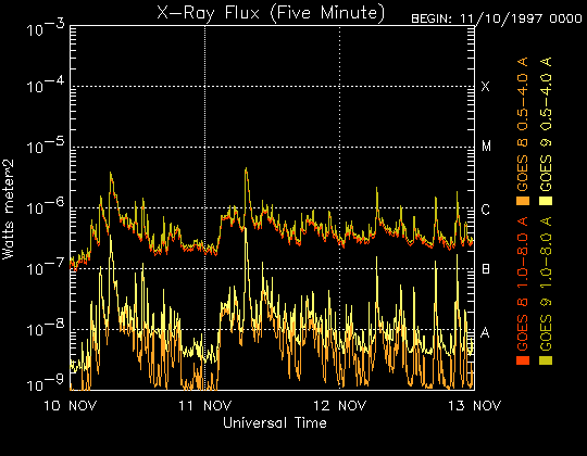 De operationele data in de bovenstaande grafiek werd aangepast om de schaalfactor te verwijderen die werd toegepast door het Space Weather Prediction Center (SWPC). Vanwege de SWPC-schaalfactor in de operationele data werden de zonnevlammen 42% kleiner gerapporteerd dan deze in de wetenschappelijke data. De schaalfactor werd ook verwijderd uit de lijst met zonnevlammen om de werkelijke fysieke eenheden weer te geven.