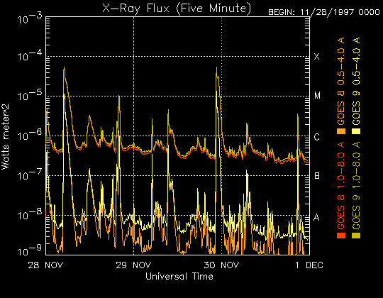 De operationele data in de bovenstaande grafiek werd aangepast om de schaalfactor te verwijderen die werd toegepast door het Space Weather Prediction Center (SWPC). Vanwege de SWPC-schaalfactor in de operationele data werden de zonnevlammen 42% kleiner gerapporteerd dan deze in de wetenschappelijke data. De schaalfactor werd ook verwijderd uit de lijst met zonnevlammen om de werkelijke fysieke eenheden weer te geven.