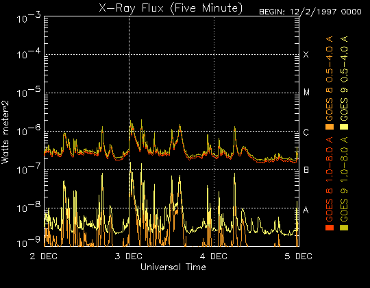 De operationele data in de bovenstaande grafiek werd aangepast om de schaalfactor te verwijderen die werd toegepast door het Space Weather Prediction Center (SWPC). Vanwege de SWPC-schaalfactor in de operationele data werden de zonnevlammen 42% kleiner gerapporteerd dan deze in de wetenschappelijke data. De schaalfactor werd ook verwijderd uit de lijst met zonnevlammen om de werkelijke fysieke eenheden weer te geven.