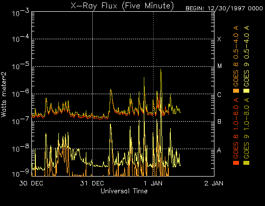 De operationele data in de bovenstaande grafiek werd aangepast om de schaalfactor te verwijderen die werd toegepast door het Space Weather Prediction Center (SWPC). Vanwege de SWPC-schaalfactor in de operationele data werden de zonnevlammen 42% kleiner gerapporteerd dan deze in de wetenschappelijke data. De schaalfactor werd ook verwijderd uit de lijst met zonnevlammen om de werkelijke fysieke eenheden weer te geven.