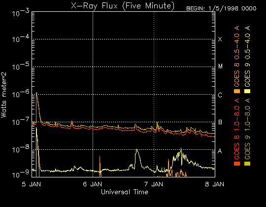 De operationele data in de bovenstaande grafiek werd aangepast om de schaalfactor te verwijderen die werd toegepast door het Space Weather Prediction Center (SWPC). Vanwege de SWPC-schaalfactor in de operationele data werden de zonnevlammen 42% kleiner gerapporteerd dan deze in de wetenschappelijke data. De schaalfactor werd ook verwijderd uit de lijst met zonnevlammen om de werkelijke fysieke eenheden weer te geven.