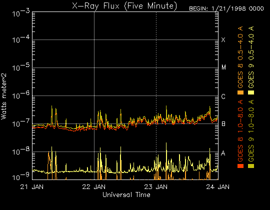 De operationele data in de bovenstaande grafiek werd aangepast om de schaalfactor te verwijderen die werd toegepast door het Space Weather Prediction Center (SWPC). Vanwege de SWPC-schaalfactor in de operationele data werden de zonnevlammen 42% kleiner gerapporteerd dan deze in de wetenschappelijke data. De schaalfactor werd ook verwijderd uit de lijst met zonnevlammen om de werkelijke fysieke eenheden weer te geven.
