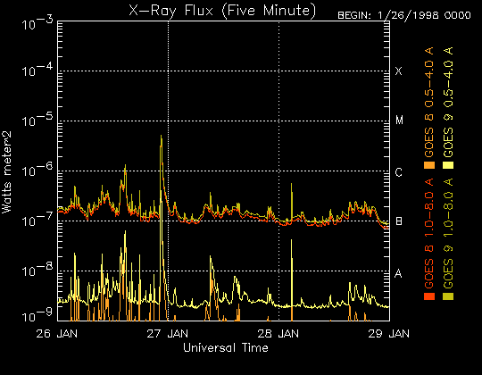 De operationele data in de bovenstaande grafiek werd aangepast om de schaalfactor te verwijderen die werd toegepast door het Space Weather Prediction Center (SWPC). Vanwege de SWPC-schaalfactor in de operationele data werden de zonnevlammen 42% kleiner gerapporteerd dan deze in de wetenschappelijke data. De schaalfactor werd ook verwijderd uit de lijst met zonnevlammen om de werkelijke fysieke eenheden weer te geven.