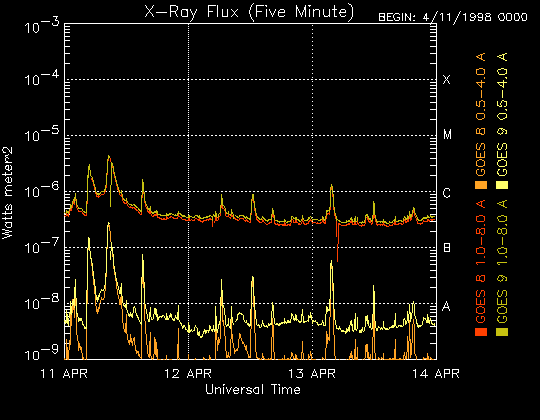 De operationele data in de bovenstaande grafiek werd aangepast om de schaalfactor te verwijderen die werd toegepast door het Space Weather Prediction Center (SWPC). Vanwege de SWPC-schaalfactor in de operationele data werden de zonnevlammen 42% kleiner gerapporteerd dan deze in de wetenschappelijke data. De schaalfactor werd ook verwijderd uit de lijst met zonnevlammen om de werkelijke fysieke eenheden weer te geven.