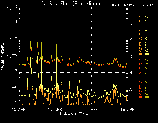 De operationele data in de bovenstaande grafiek werd aangepast om de schaalfactor te verwijderen die werd toegepast door het Space Weather Prediction Center (SWPC). Vanwege de SWPC-schaalfactor in de operationele data werden de zonnevlammen 42% kleiner gerapporteerd dan deze in de wetenschappelijke data. De schaalfactor werd ook verwijderd uit de lijst met zonnevlammen om de werkelijke fysieke eenheden weer te geven.