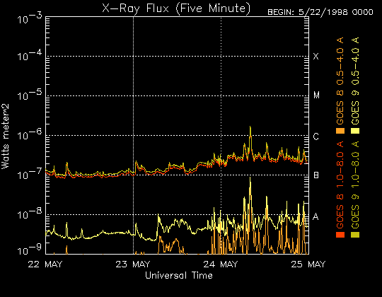 De operationele data in de bovenstaande grafiek werd aangepast om de schaalfactor te verwijderen die werd toegepast door het Space Weather Prediction Center (SWPC). Vanwege de SWPC-schaalfactor in de operationele data werden de zonnevlammen 42% kleiner gerapporteerd dan deze in de wetenschappelijke data. De schaalfactor werd ook verwijderd uit de lijst met zonnevlammen om de werkelijke fysieke eenheden weer te geven.