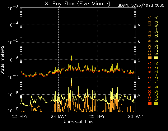De operationele data in de bovenstaande grafiek werd aangepast om de schaalfactor te verwijderen die werd toegepast door het Space Weather Prediction Center (SWPC). Vanwege de SWPC-schaalfactor in de operationele data werden de zonnevlammen 42% kleiner gerapporteerd dan deze in de wetenschappelijke data. De schaalfactor werd ook verwijderd uit de lijst met zonnevlammen om de werkelijke fysieke eenheden weer te geven.