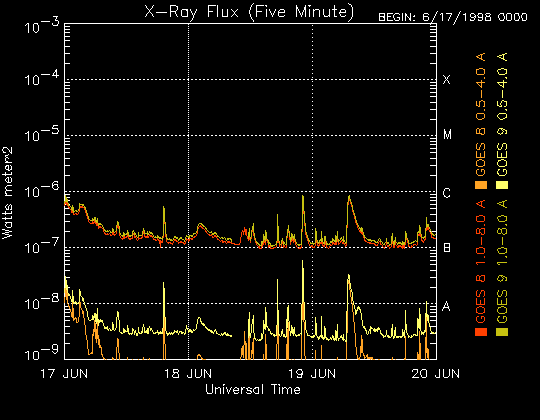 De operationele data in de bovenstaande grafiek werd aangepast om de schaalfactor te verwijderen die werd toegepast door het Space Weather Prediction Center (SWPC). Vanwege de SWPC-schaalfactor in de operationele data werden de zonnevlammen 42% kleiner gerapporteerd dan deze in de wetenschappelijke data. De schaalfactor werd ook verwijderd uit de lijst met zonnevlammen om de werkelijke fysieke eenheden weer te geven.