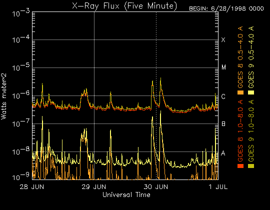 De operationele data in de bovenstaande grafiek werd aangepast om de schaalfactor te verwijderen die werd toegepast door het Space Weather Prediction Center (SWPC). Vanwege de SWPC-schaalfactor in de operationele data werden de zonnevlammen 42% kleiner gerapporteerd dan deze in de wetenschappelijke data. De schaalfactor werd ook verwijderd uit de lijst met zonnevlammen om de werkelijke fysieke eenheden weer te geven.